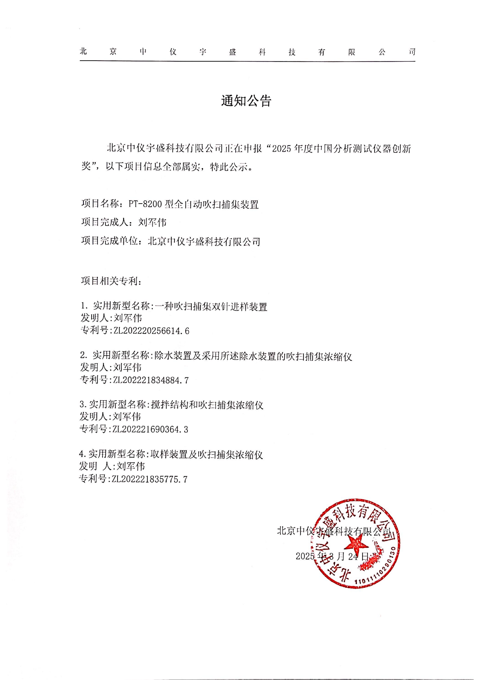 關(guān)于北京中儀宇盛申報(bào)“2025年度中國(guó)分析測(cè)試儀器創(chuàng)新獎(jiǎng)”的